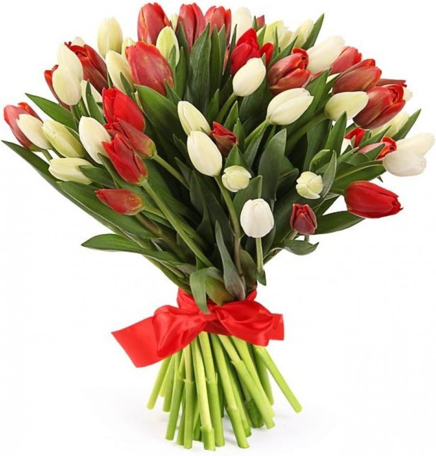 Эффектное сочетание белых и красных тюльпанов в букете - это снег и пламя, это нежность и страсть, теплота и восторг, искренность и пламенная любовь! Расскажите своей возлюбленной о Ваших чувствах с помощью этого роскошного букета.